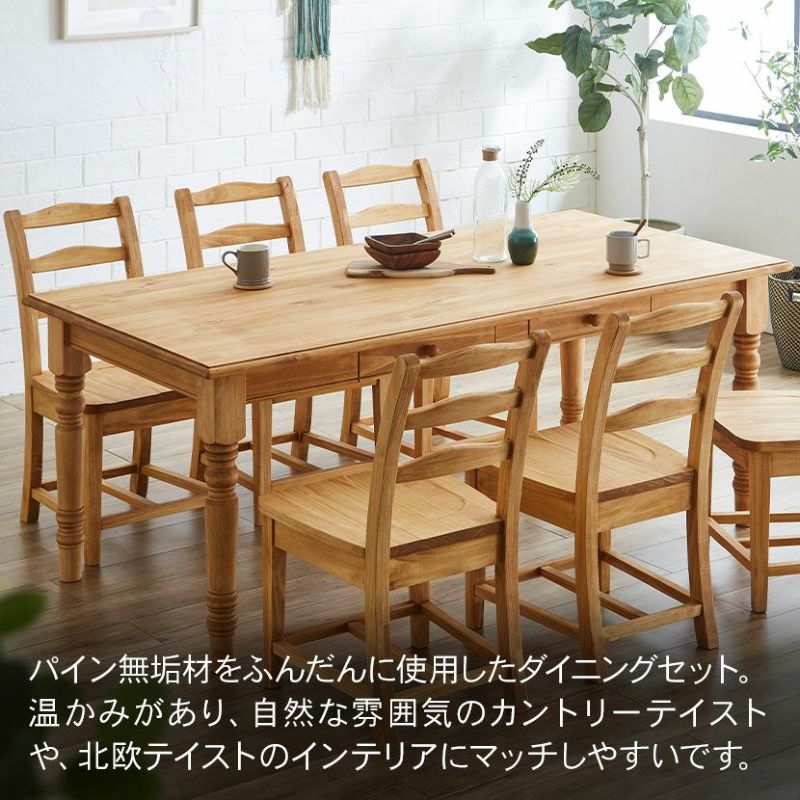 パイン無垢材をふんだんに使用した、カントリーテイストのダイニングセット。