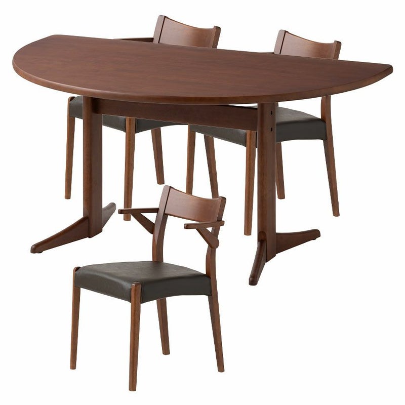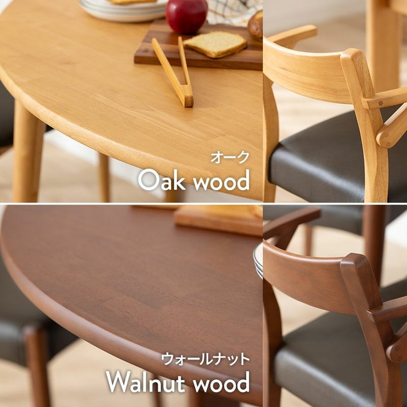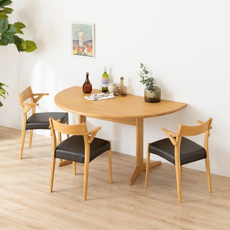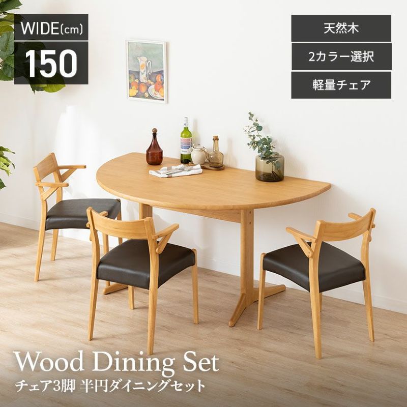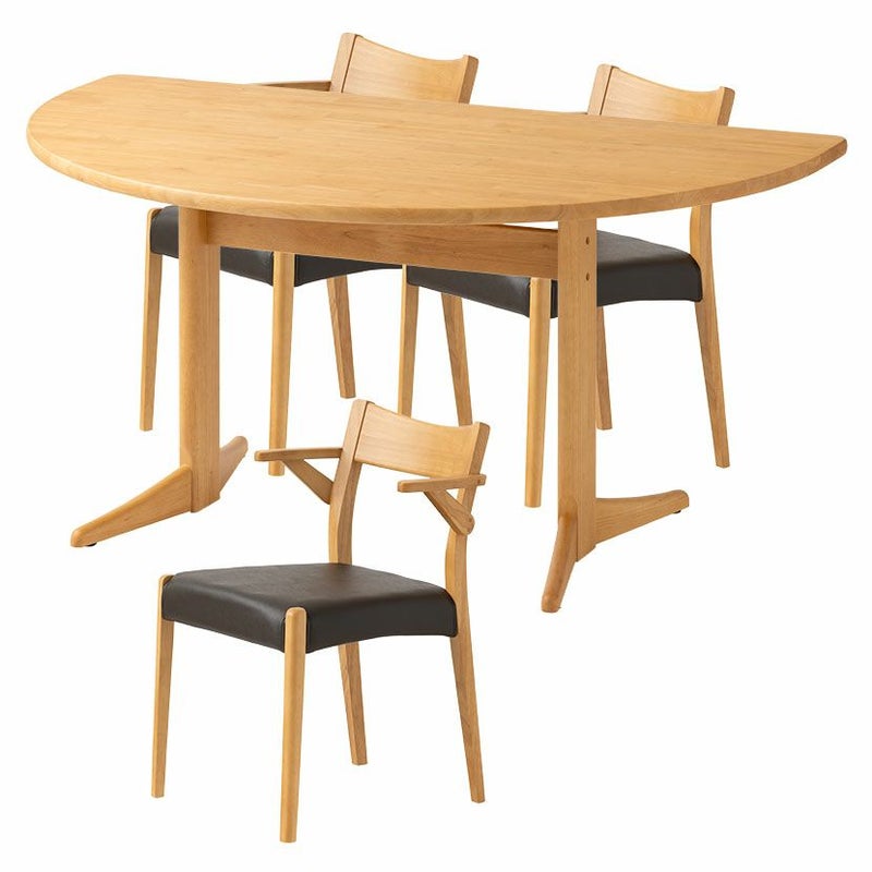 高級感溢れる天然木ダイニングセット滑らかであたたかみのある天然木ダイニング。優しい手触りが日々の暮らしの中心になる1台です。●柔らかな印象の半円デザインテーブル珍しい半円型テーブルはチェアの数や位置を自由に配置でき、来客時にもすぐに対応できます。
