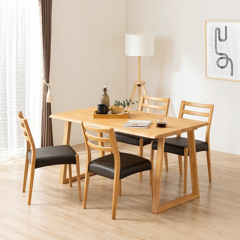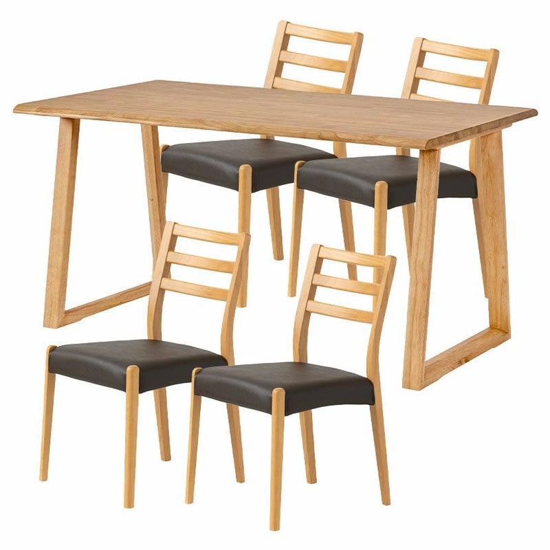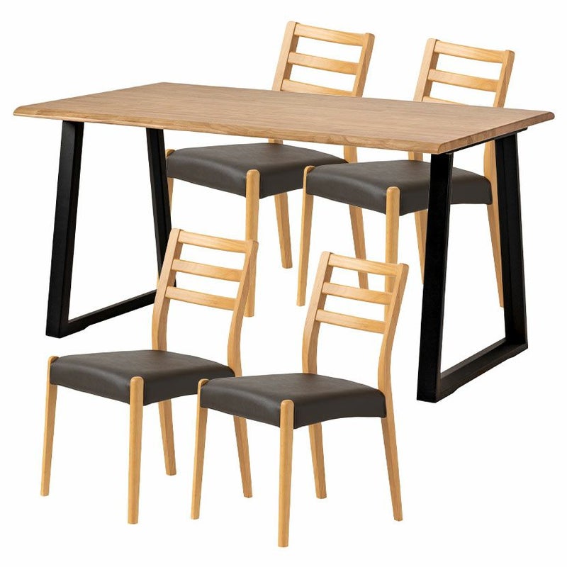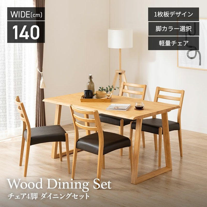 【設置無料】4人用 木製 ダイニングテーブルセット(2本脚) 5点 インスパイア 一枚板風 テーブル 天然木 肘なし ダイニングチェア おしゃれ 和モダン (幅140cm 食卓テーブル×1 食卓椅子×4)