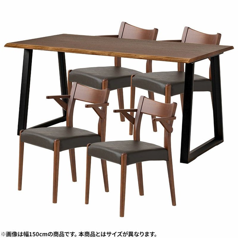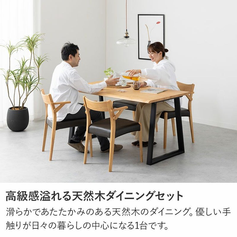 【設置無料】4人用 木製 ダイニングテーブルセット(2本脚) 5点 インスパイア 一枚板風 テーブル 天然木 肘付き コンパクト ダイニングチェア おしゃれ 和モダン (幅140cm 食卓テーブル×1 食卓椅子×4)