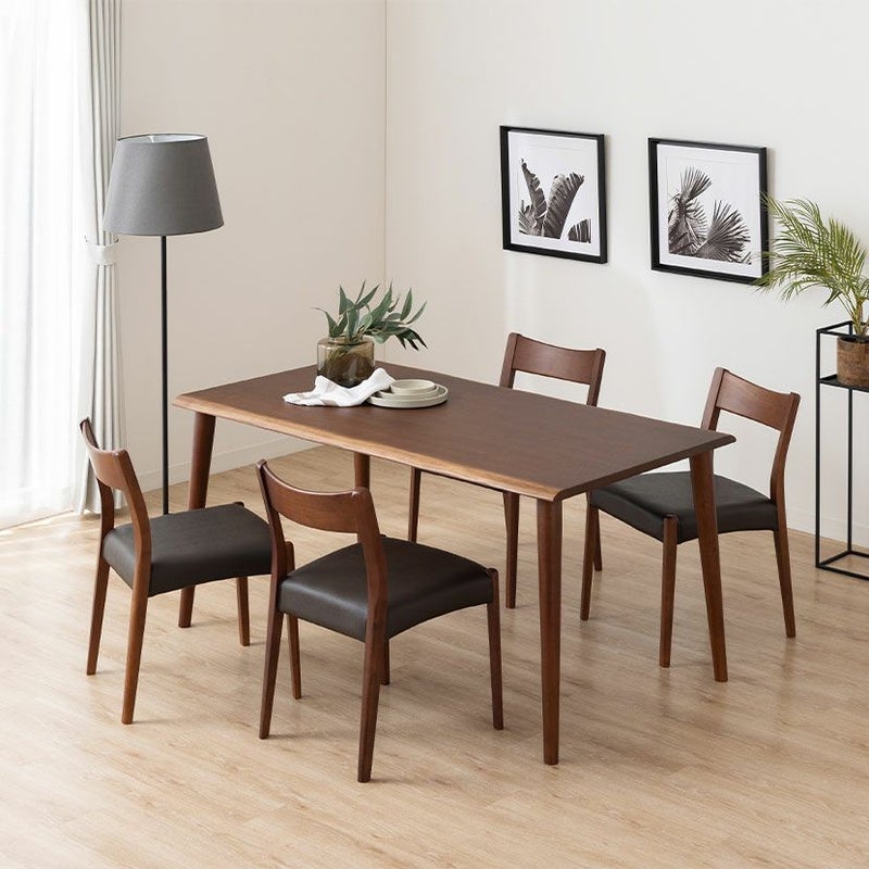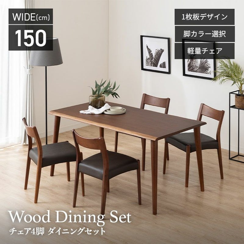 【設置無料】4人用 木製 ダイニングテーブルセット(4本脚) 5点 インスパイア 一枚板風 テーブル 天然木 肘なし コンパクト ダイニングチェア おしゃれ 和モダン (幅150cm 食卓テーブル×1 食卓椅子×4)