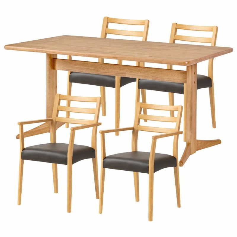 【設置無料】4人用 ダイニングテーブルセット(2本脚) 5点 シンプルスタンダード 木製 テーブル 肘付き ダイニングチェア おしゃれ 北欧 (幅150cm 食卓テーブル×1 食卓椅子×4)