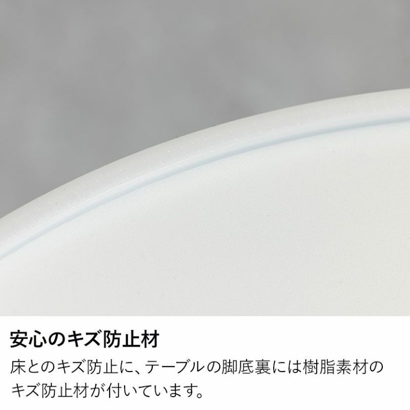 床とのキズ防止に、テーブルの脚底裏には樹脂素材のキズ防止材が付いています。