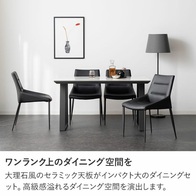 大理石風のセラミック天板がインパクト大のダイニングセット。高級感溢れるダイニング空間を演出します。