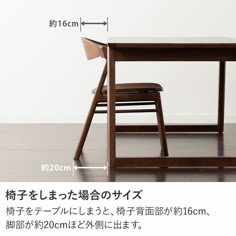 椅子をテーブルにしまうと、椅子背面部が約16cm、脚部が約20cmほど外側に出ます。
