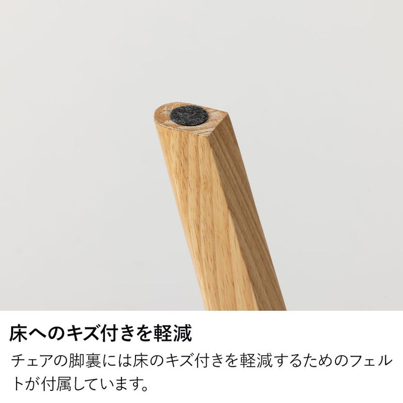フローリングを傷つけないよう、脚の裏には傷つきを軽減してくれるフェルトを付属しています。チェアを引く際の音も軽減してくれるため、マンションなどにお住まいの方にも使いやすいです。
