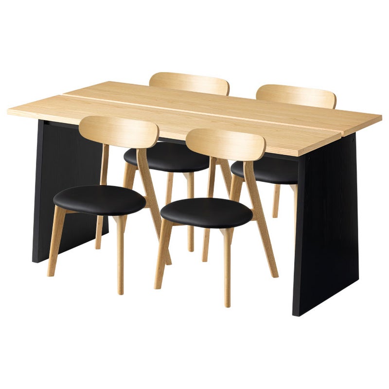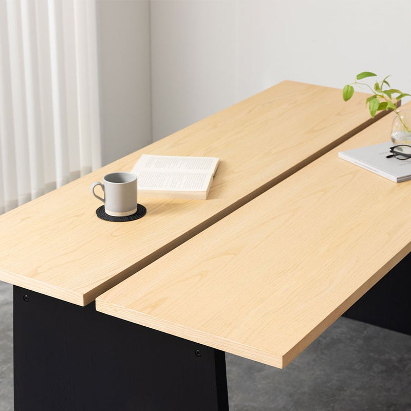 天板には、木の温もりをダイレクトに感じられる天然木突板を使用しました。中央に施されたスリットデザインが、シンプルなテーブルに洗練された印象を与え、空間のアクセントとなります。