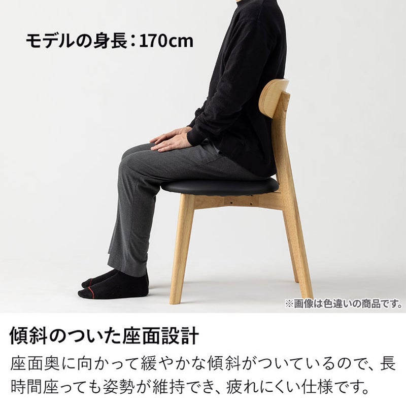 背もたれには、身体のラインに沿うような緩やかなカーブを施しました。座った瞬間に背中をそっと包み込み、自然とリラックスした姿勢へと導きます。お食事の時間はもちろん、食後のティータイムや読書など、長い時間座っていても疲れにくい設計です。