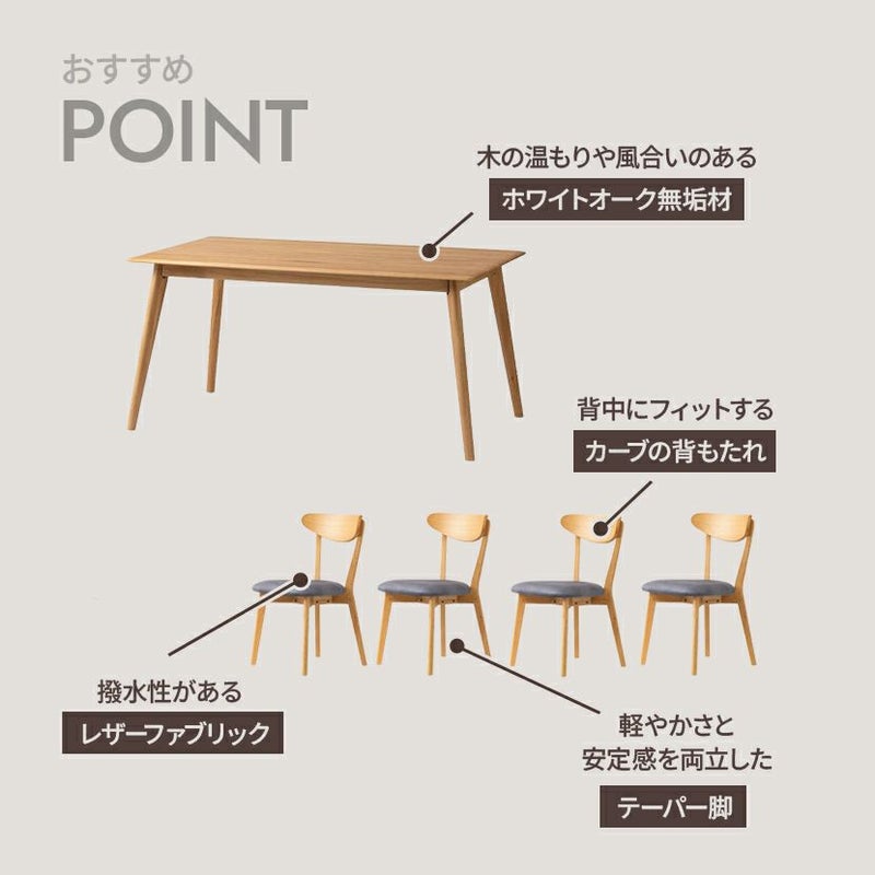 【設置無料】4人用 ダイニングテーブル セット 5点 食卓 テーブル 布張り チェア おしゃれ 北欧 モダン ナチュラル (幅150cm 木製 長方形 テーブル×1 チェア×4)