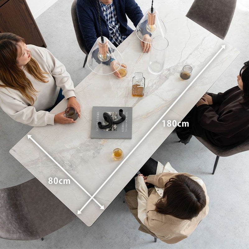 モダンなセラミック天板とスマートに空間を引き締めるスチール脚。贅沢で心地よいダイニングを演出します。