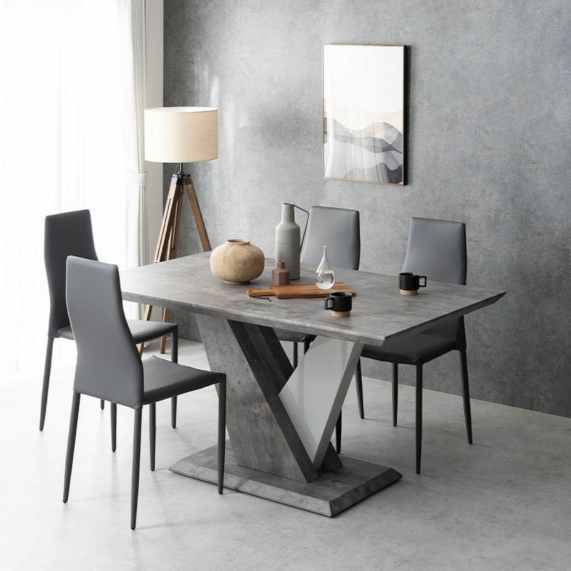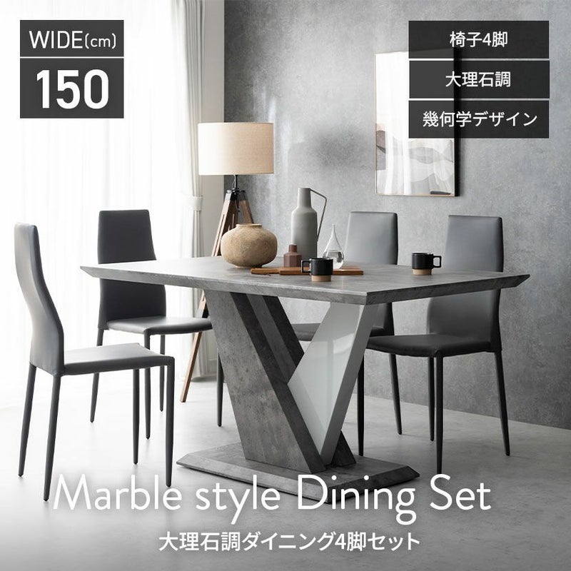 幾何学デザインの脚部が印象的なダイニングテーブル。大理石調の質感も相まって大胆なデザインが特徴です。