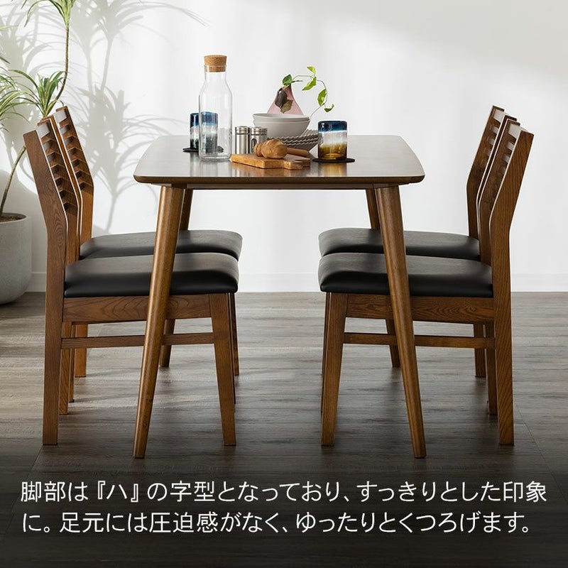 脚部は「八」の字型となっており、すっきりとした印象に。足元には圧迫感がなく、ゆったりとくつろげます。