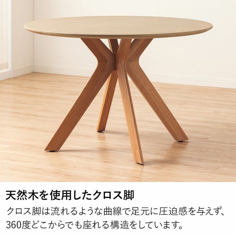 クロス脚は流れるような曲線で足元に圧迫感を与えず、360度どこからでも座れる構造をしています。
