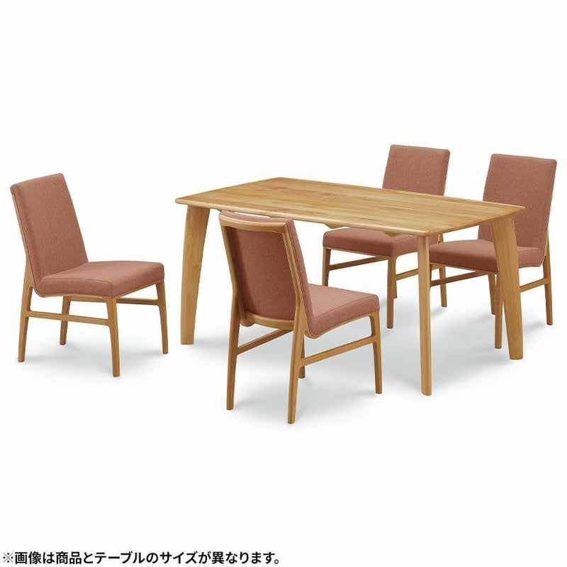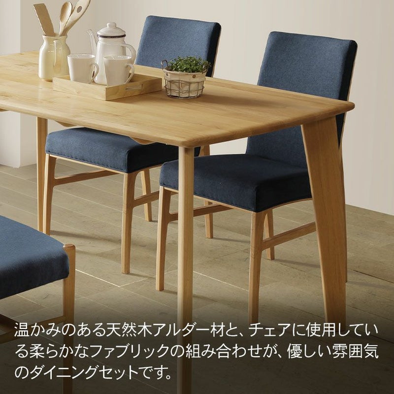 温かみのある天然木アルダー材と、チェアに使用している柔らかなファブリックの組み合わせが、優しい雰囲気のダイニングセットです。