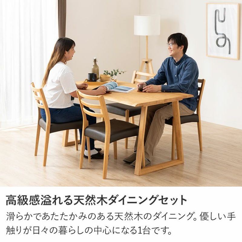 【設置無料】4人用 木製 ダイニングテーブルセット(2本脚) 5点 インスパイア 一枚板風 テーブル 天然木 肘なし ダイニングチェア おしゃれ 和モダン (幅140cm 食卓テーブル×1 食卓椅子×4)