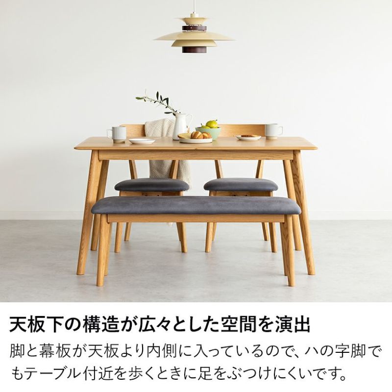 脚と幕板が天板より内側に入っているので、ハの字脚でもテーブル付近を歩くときに足をぶつけにくいです。
