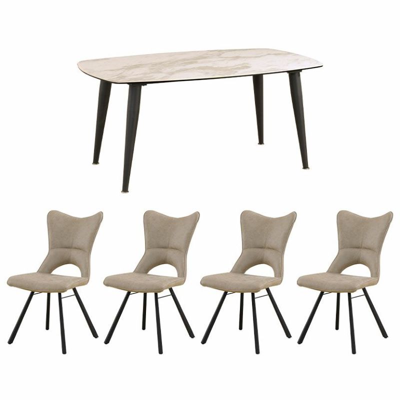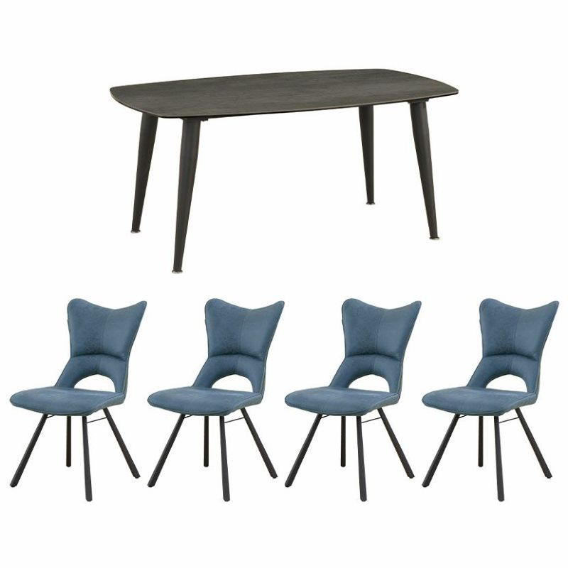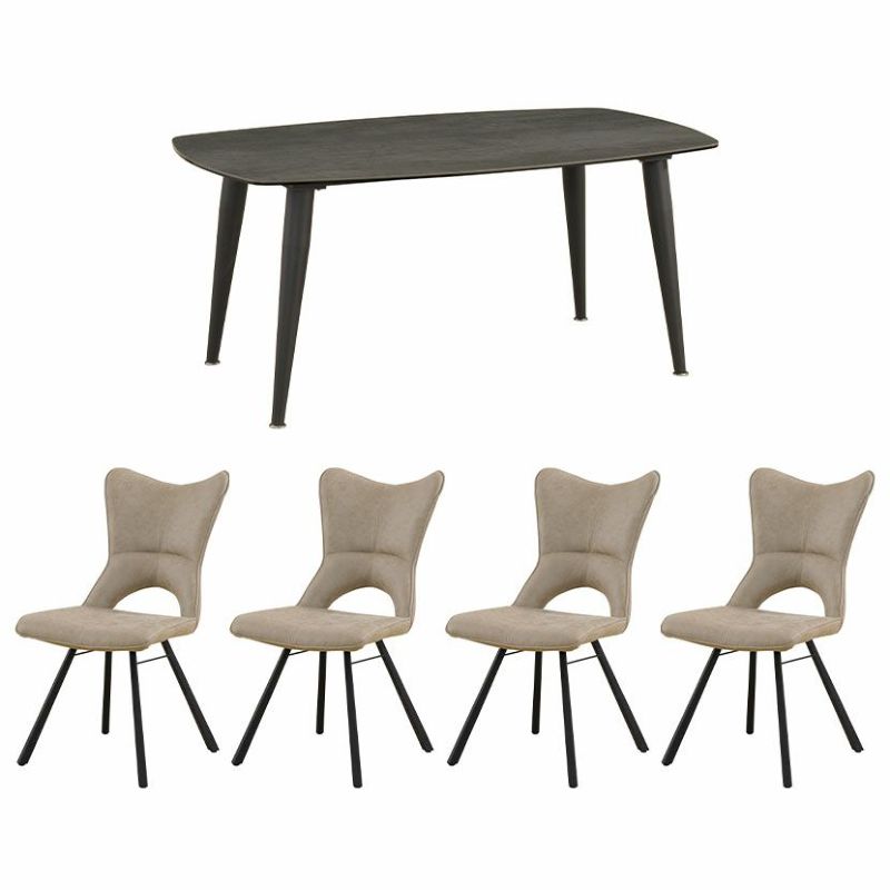 温かみのあるファブリックの張地と、細身のスチール脚との組み合わせが特徴です。