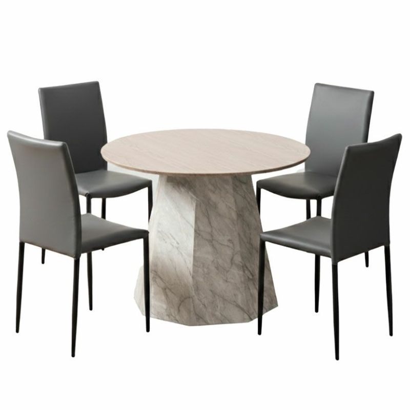 温かみのある木目調の天板と、重厚感のある大理石調の脚を組み合わせました。