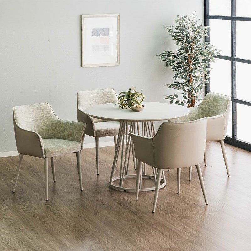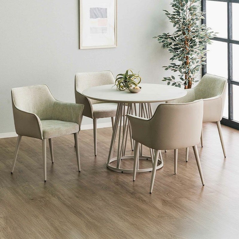 柔らかな曲線が空間を優しく彩る、円形ダイニングテーブルセット。