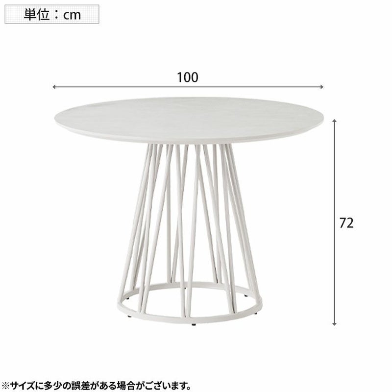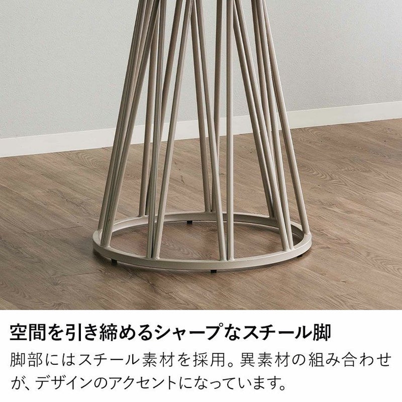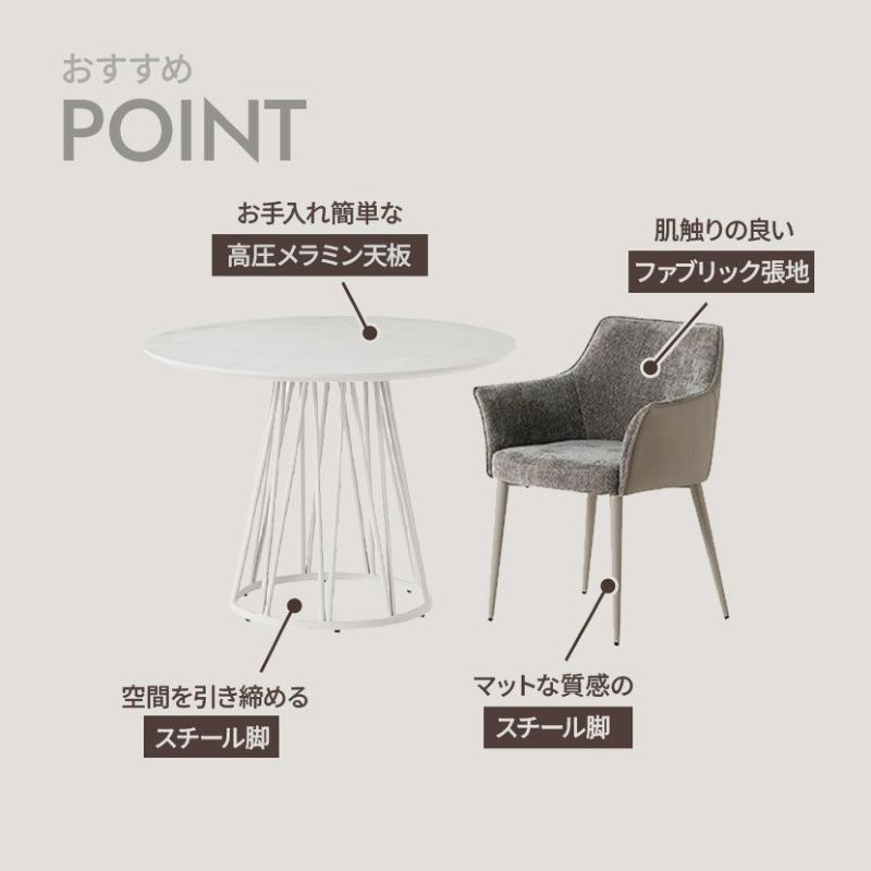 細身のスチール脚が、円形天板のやわらかな印象を引き締め、モダンな雰囲気を演出します。