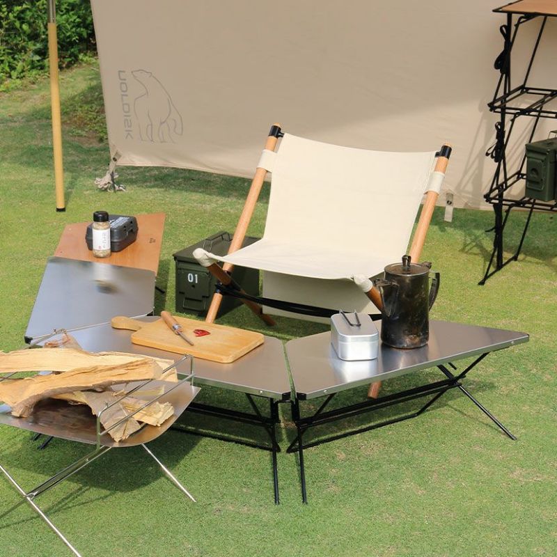 自由自在に組み合わせ、レイアウトが可能なキャンプテーブルです。