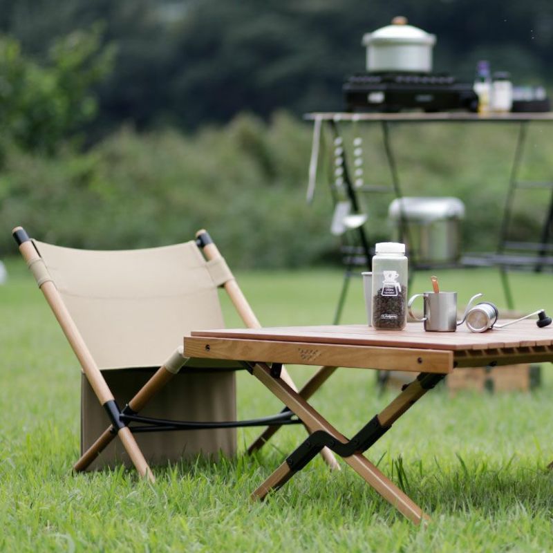 帆布・天然木・スチールの異素材を、バランスよく組み合わせたアウトドアローチェアです。