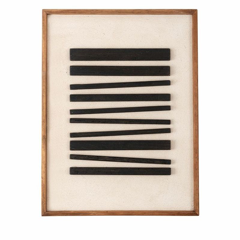 塗装したコットン帆布をベースに、古材をリズミカルに重ねることで奥行きのある立体感を生み出しています。