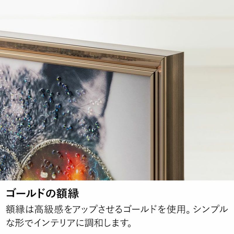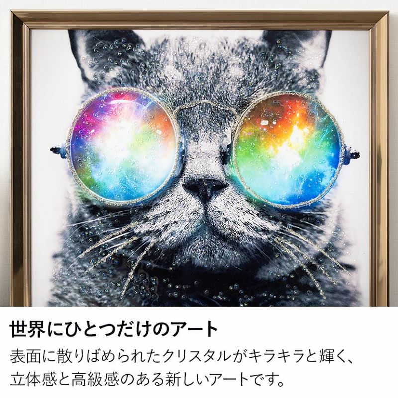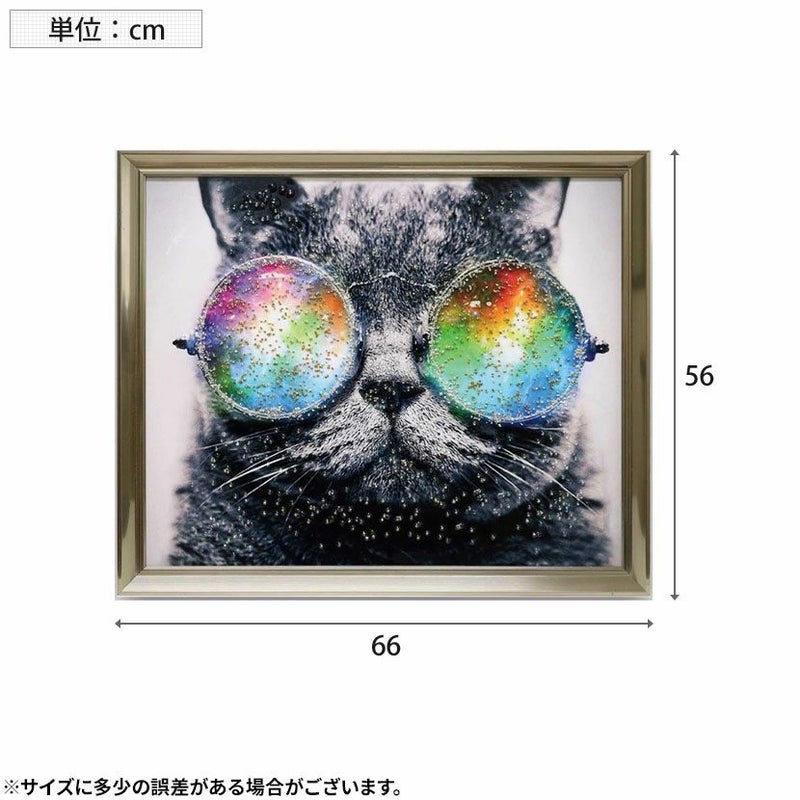 幅66cm クリスタルアート インテリア雑貨 キャットグラス 猫 動物 アートパネル 壁掛けアート フレーム付き 壁飾り おしゃれ キラキラ リビング 玄関 完成品