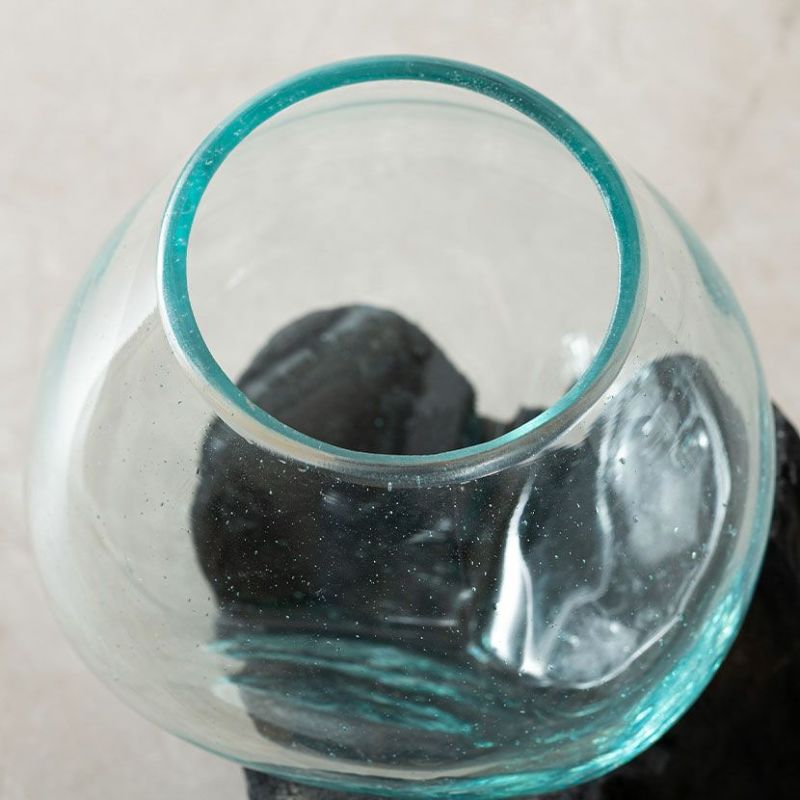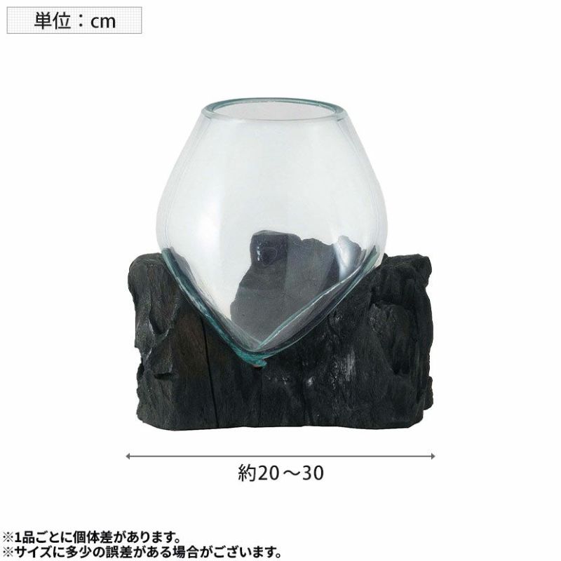 幅26cm ガラスオブジェ 天然木 ブラック オブジェ 置物 ガラス雑貨 花器 フラワーポット テラリウム アクアリウム インテリア雑貨 おしゃれ リビング 玄関 完成品 送料無料 送料無料 完成品 完成品 ¥ 6,090 税込