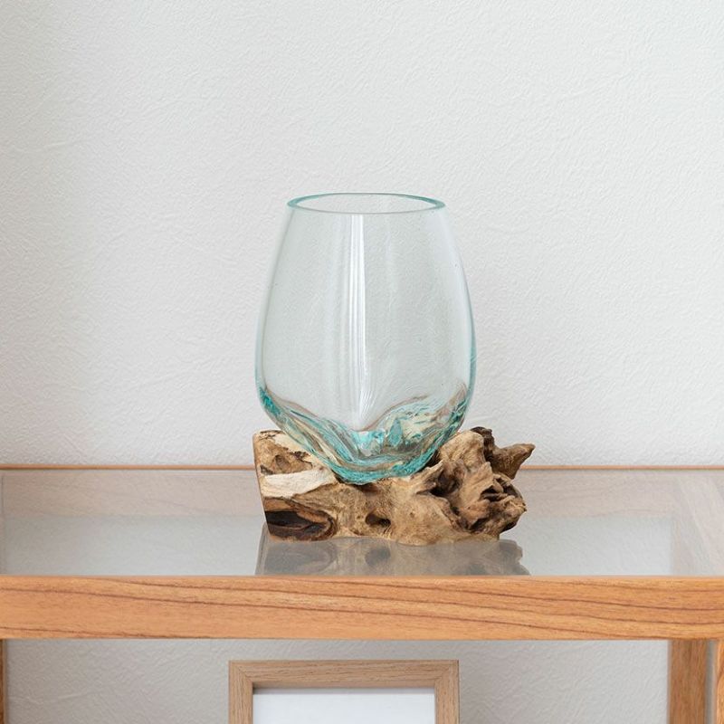 幅26cm ガラスオブジェ 天然木 ブラウン オブジェ 置物 ガラス雑貨 花器 フラワーポット テラリウム アクアリウム インテリア雑貨 おしゃれ リビング 玄関 完成品 送料無料 送料無料 完成品 完成品 ¥ 6,090 税込