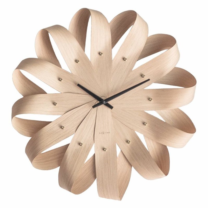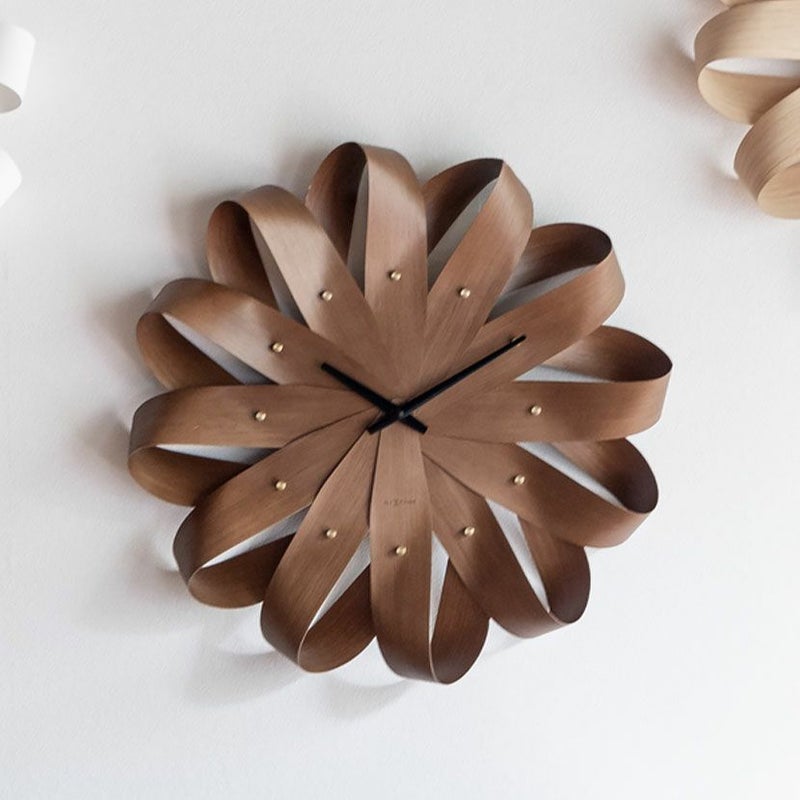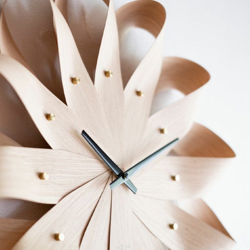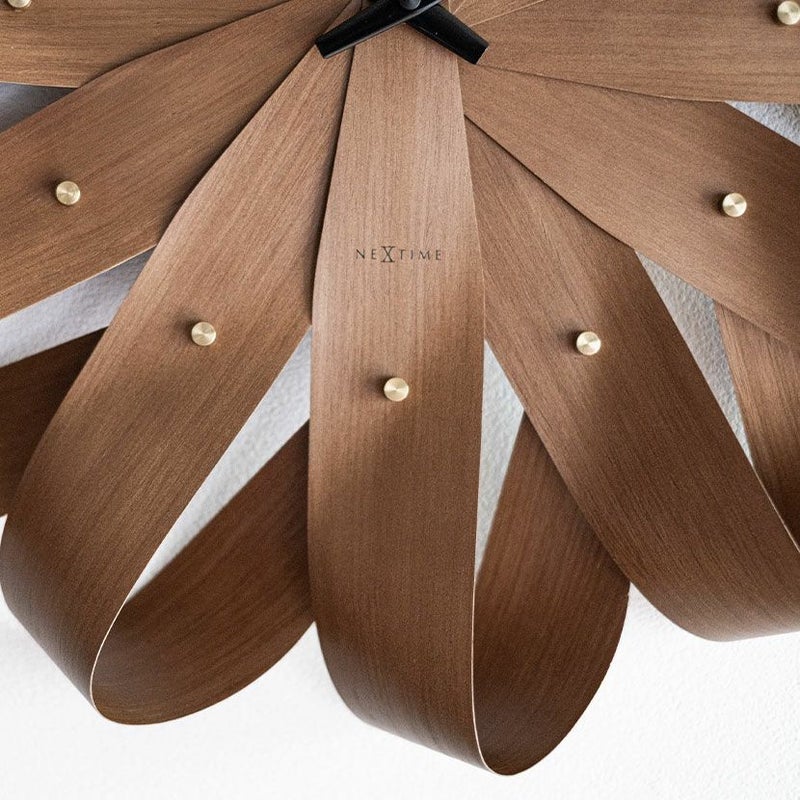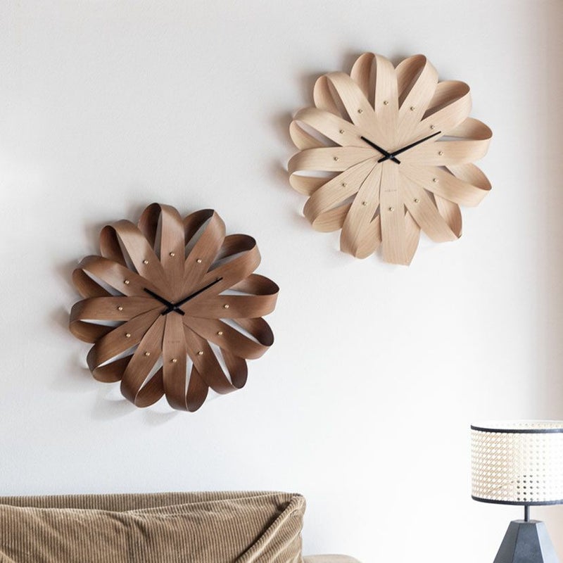 放射状に配置された木目のパーツが、まるで風車の羽のように見え、軽やかで動きのある印象を与えます。