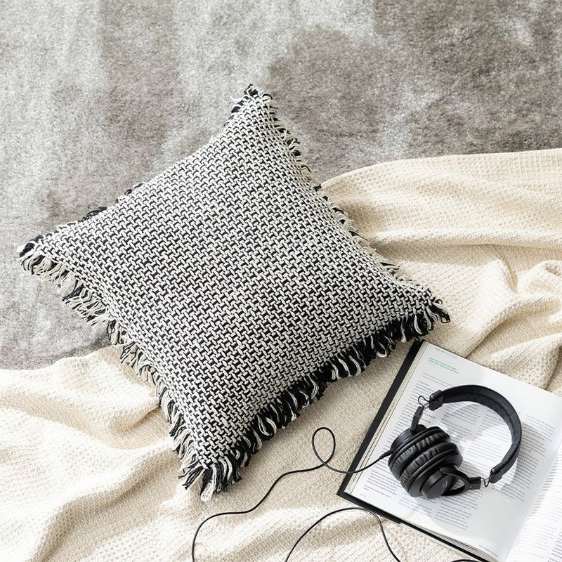 正方形 クッションカバー マクラメウーブン 45×45cm対応 綿100% 幾何学模様 ファブリック 座布団カバー モダン ソファクッション カバー おしゃれ モノトーン 送料無料 送料無料 完成品 完成品 ¥ 3,990 税込