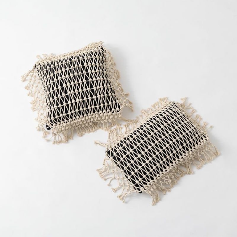 正方形 クッションカバー マクラメウーブン 45×45cm対応 綿100% 幾何学模様 ファブリック 座布団カバー モダン ソファクッション カバー おしゃれ モノトーン 送料無料 送料無料 完成品 完成品 ¥ 3,990 税込