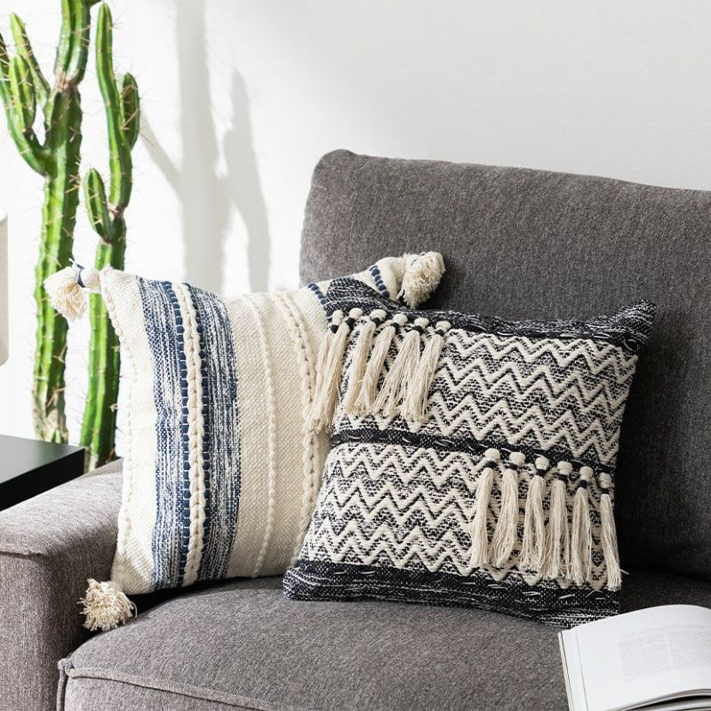正方形 クッションカバー ボヘミアクロス 45×45cm対応 幾何学模様 綿100% ファブリック シャギー 座布団カバー モダン ソファクッション カバー おしゃれ モノトーン 送料無料 送料無料 完成品 完成品 ¥ 3,990 税込