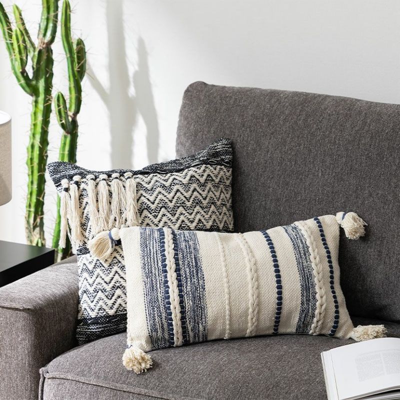 長方形 クッション 50×30cm マクラメウーブンクッション カバー付き 幾何学模様 ファブリック モダン ソファクッション おしゃれ モノトーン リビング 送料無料 送料無料 完成品 完成品 ¥ 4,290 税込