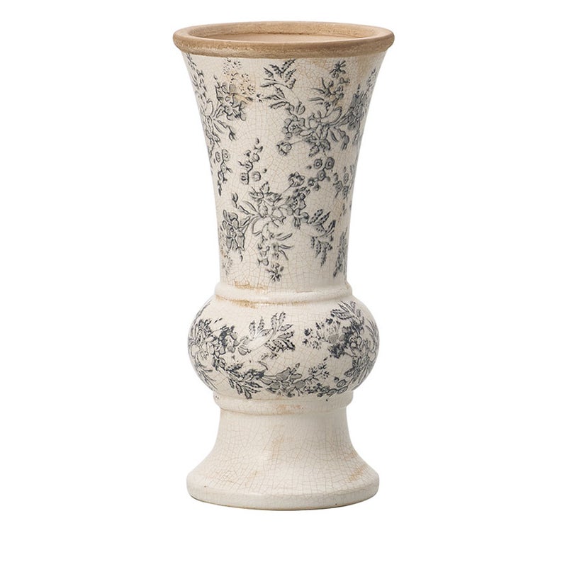 幅15cm フラワーベース 大 花柄 アンティーク ペイント ストーンウェア 陶磁器 花器 花入れ オブジェ インテリア雑貨 花瓶 おしゃれ リビング ダイニング 玄関 ホワイト ブラック 送料無料 送料無料 完成品 完成品 ¥ 5,780 税込
