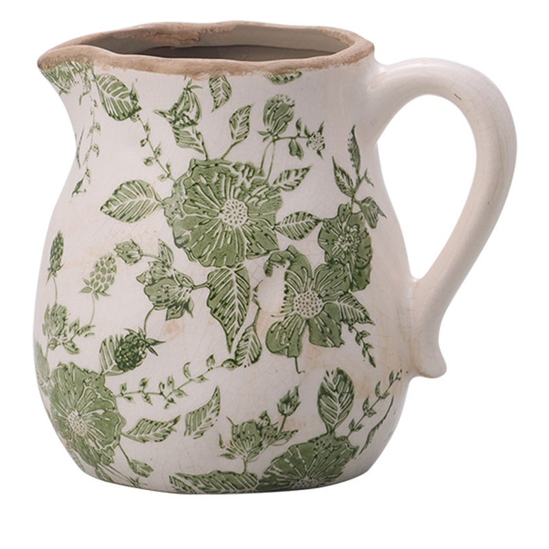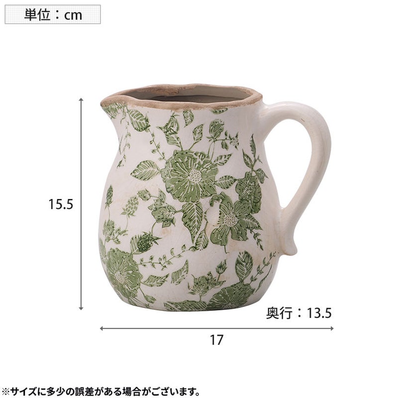 幅21cm フラワーベース 取っ手付き 大 花柄 アンティーク ペイント ストーンウェア 陶磁器 花器 花入れ オブジェ インテリア雑貨 花瓶 おしゃれ リビング ダイニング 玄関 ホワイト グリーン 送料無料 送料無料 完成品 完成品 ¥ 5,280 税込
