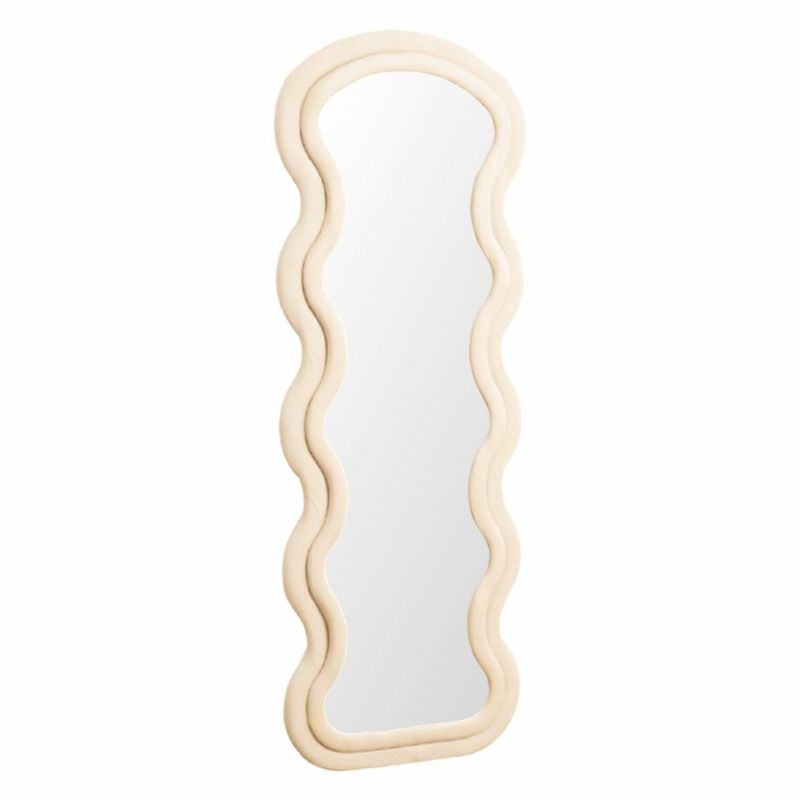 幅75cm スタンドミラー ウェーブデザイン ファブリックフレーム 大型ミラー ウェーブミラー ワイド 姿見 かわいい 全身鏡 おしゃれ 韓国風 玄関 リビング 寝室 完成品 送料無料 送料無料 完成品 完成品 ¥ 17,900 税込