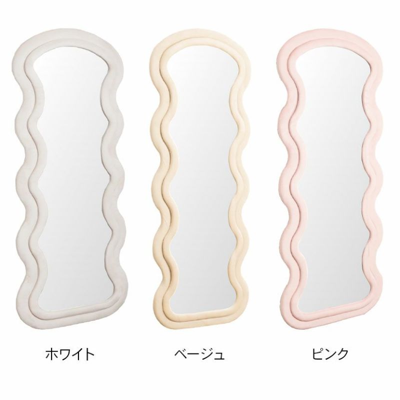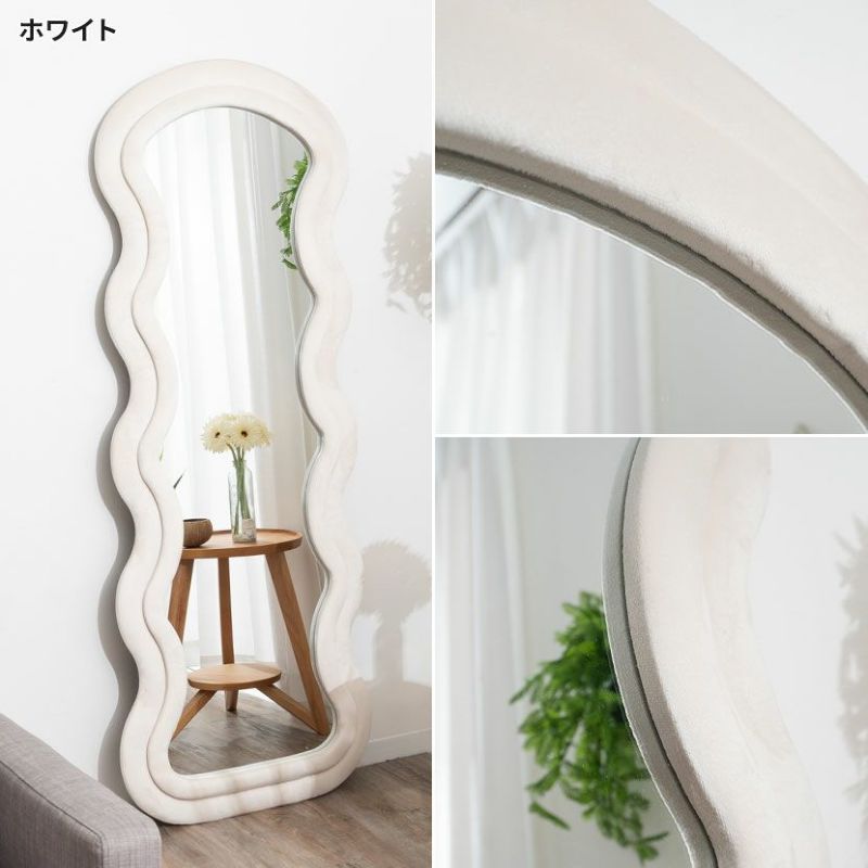 幅60cm スタンドミラー ウェーブデザイン ファブリックフレーム 大型ミラー ウェーブミラー ワイド 姿見 かわいい 全身鏡 おしゃれ 韓国風 玄関 リビング 寝室 完成品 送料無料 送料無料 完成品 完成品 ¥ 15,900 税込