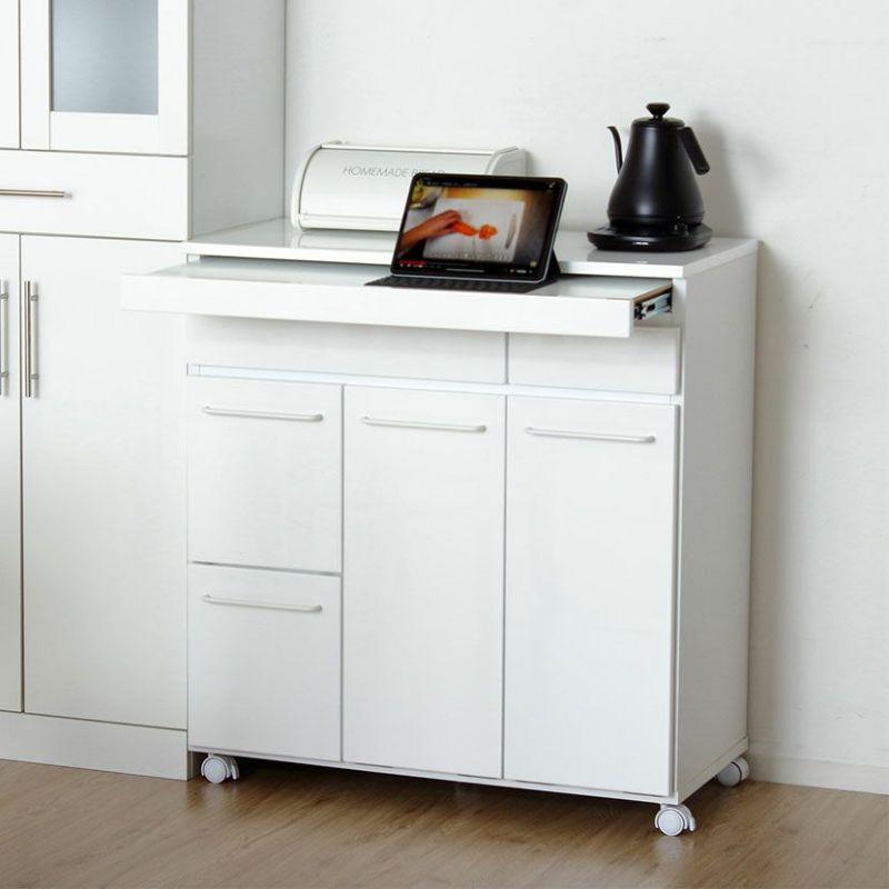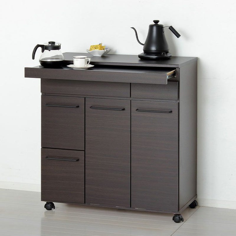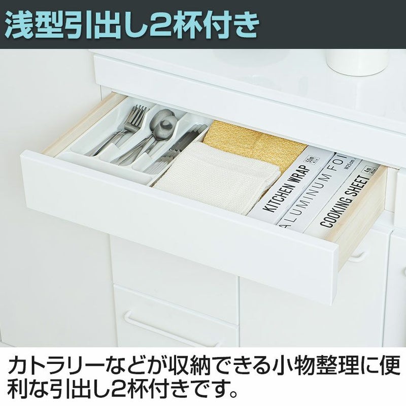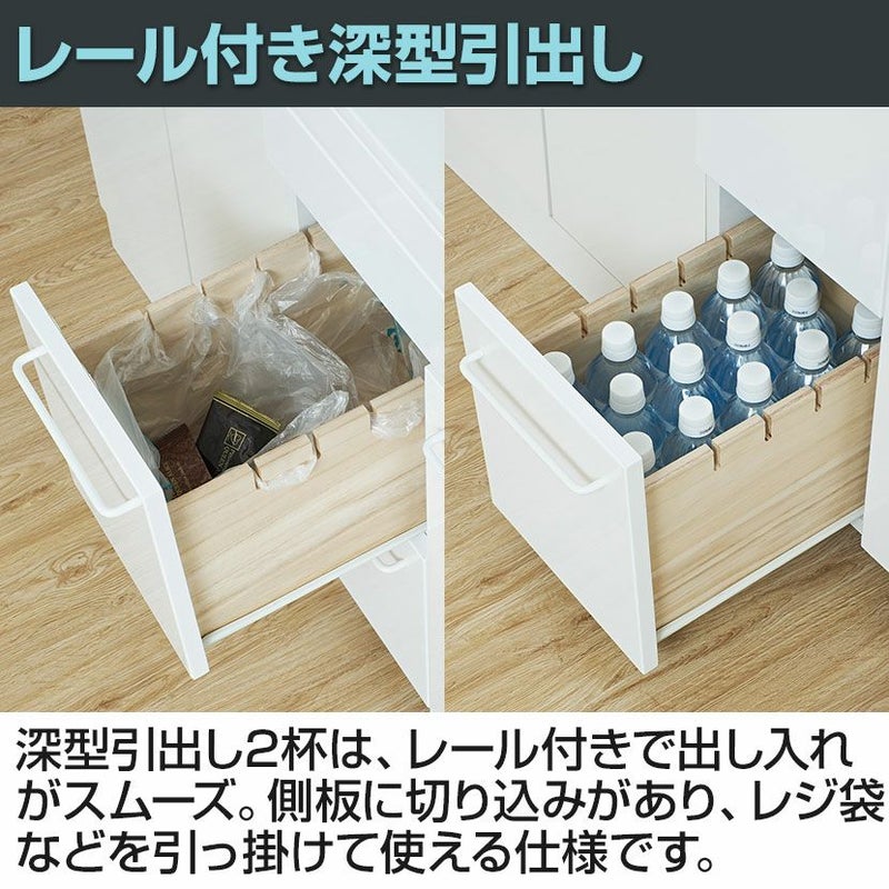 ・下部引き出し2杯は、レール付きで出し入れがスムーズです。側板に切り込みがあるので、レジ袋などを引っ掛けて使えます。