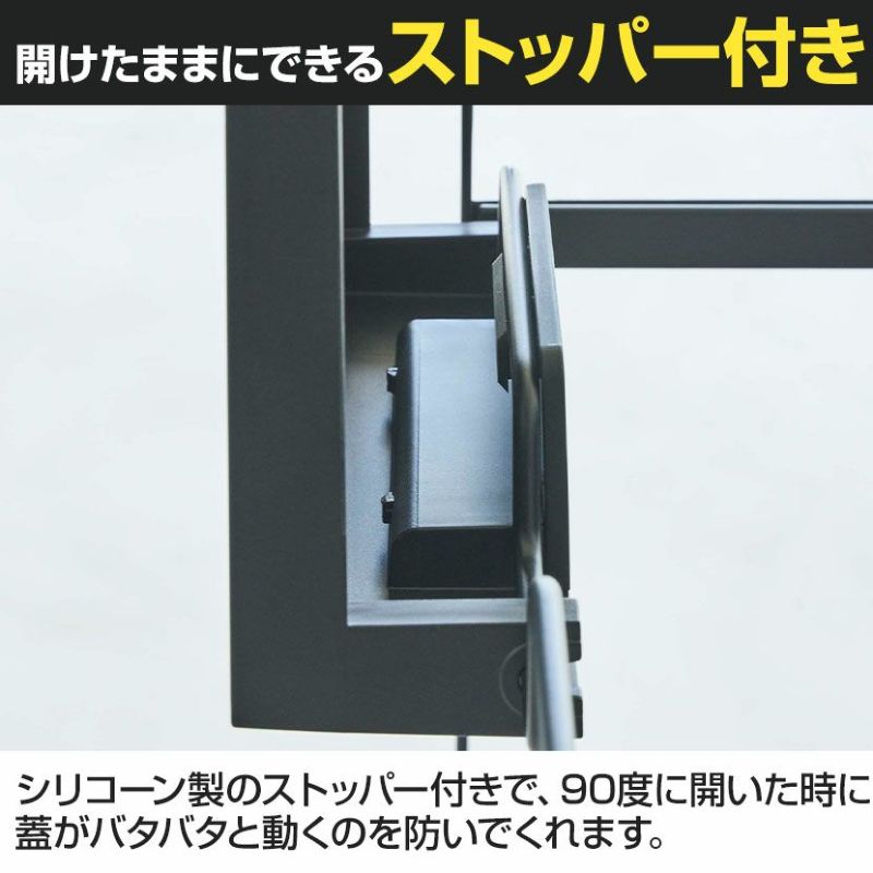 ・蓋は片手で開閉が可能で、ゴミ捨て時、袋の交換時に便利なストッパー付きでとても便利です。