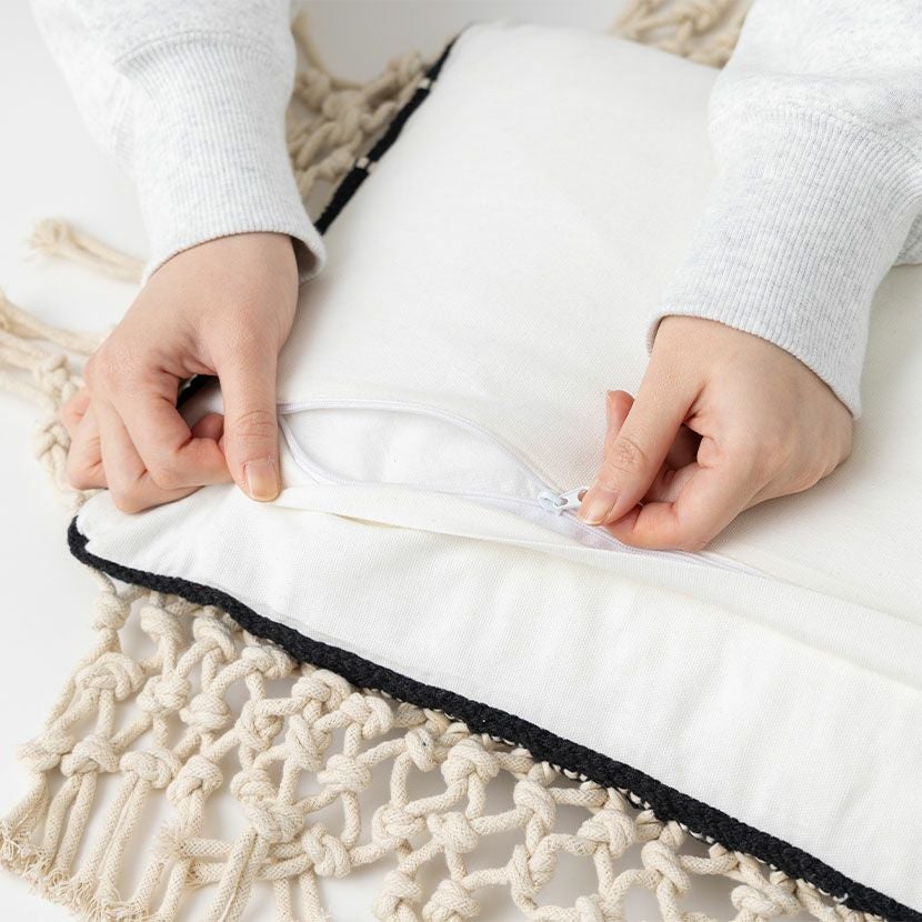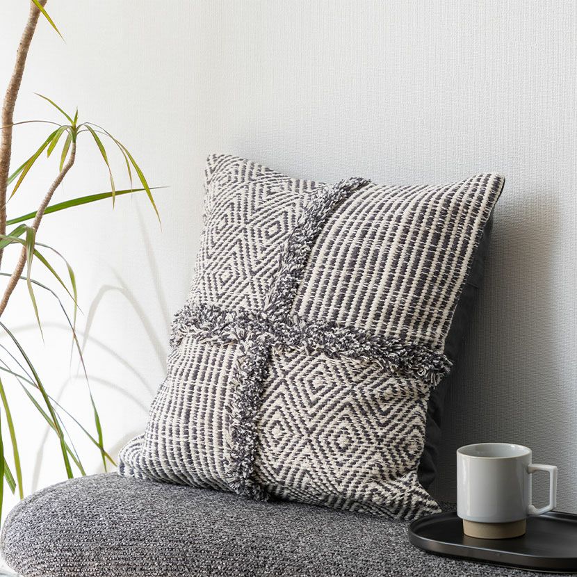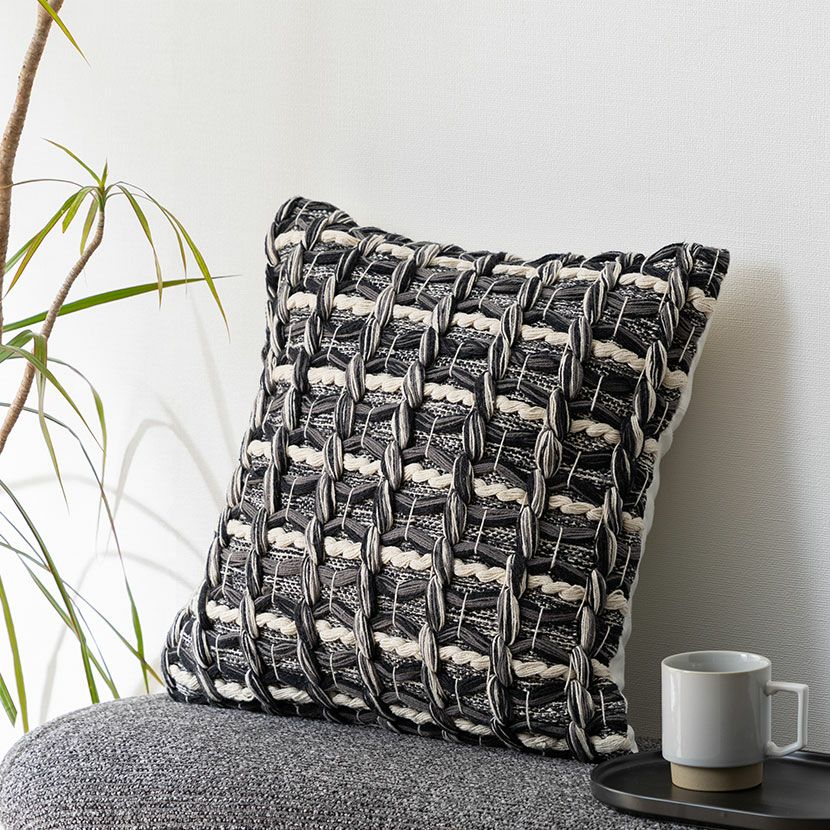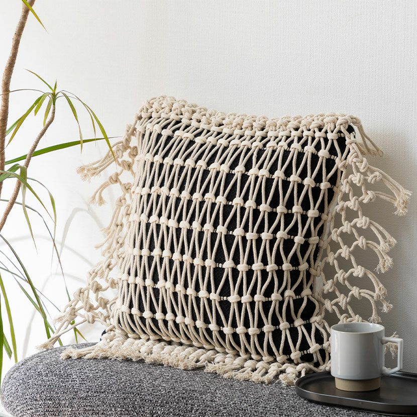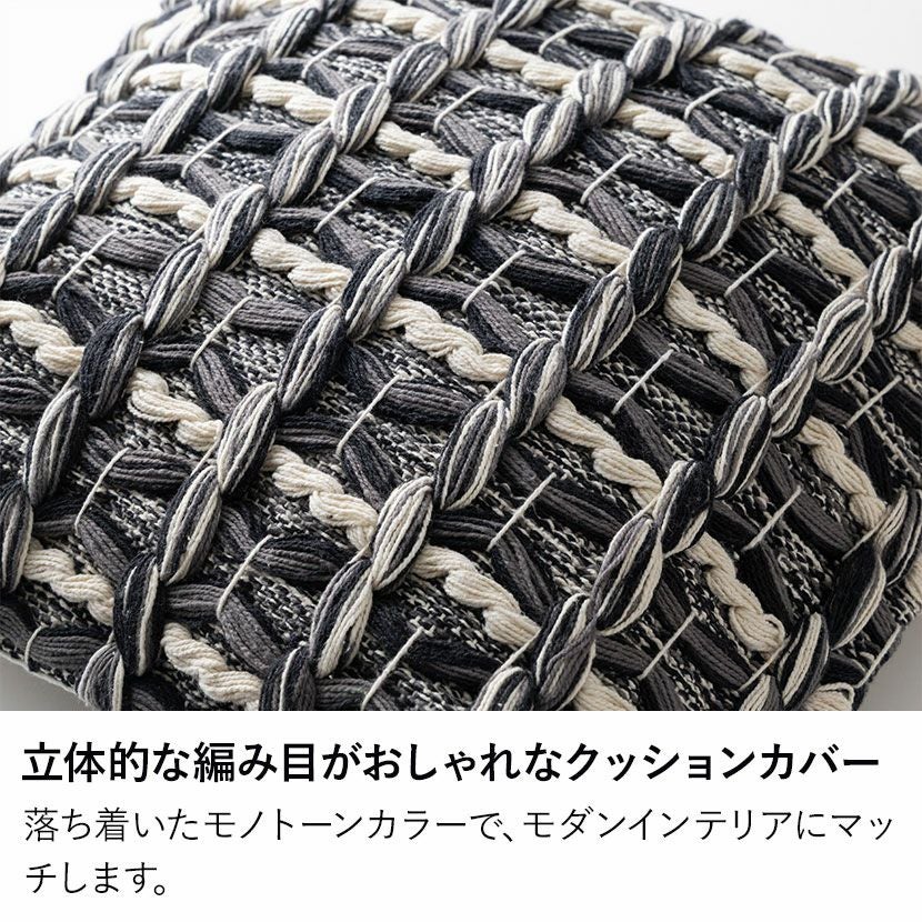 他の画像を見る 正方形 クッションカバー マクラメウーブン 45×45cm対応 綿100% 幾何学模様 ファブリック 座布団カバー モダン ソファクッション カバー おしゃれ モノトーン 送料無料 送料無料 完成品 完成品 ¥ 3,990 税込 カートに入れる