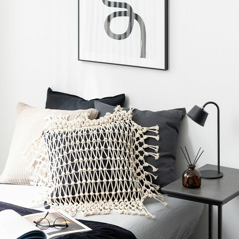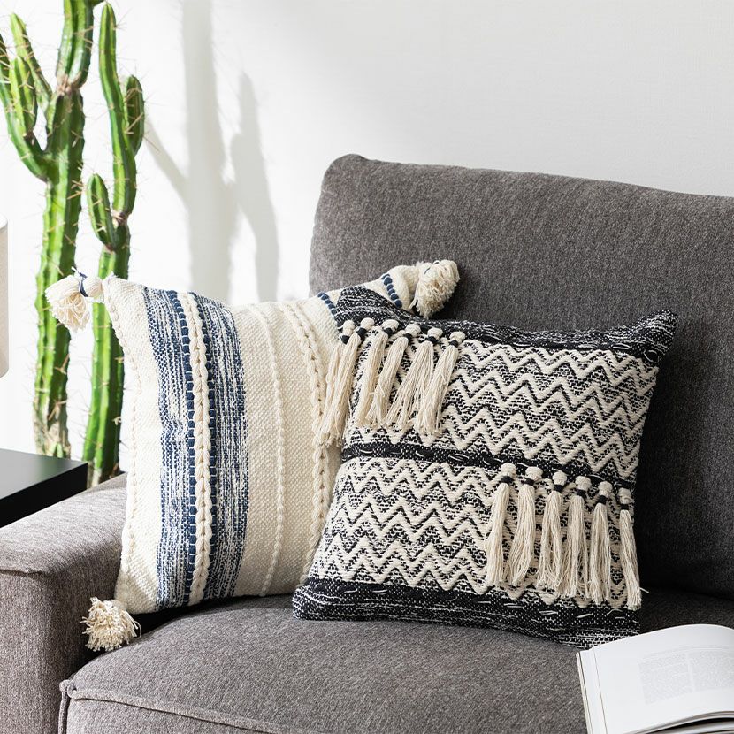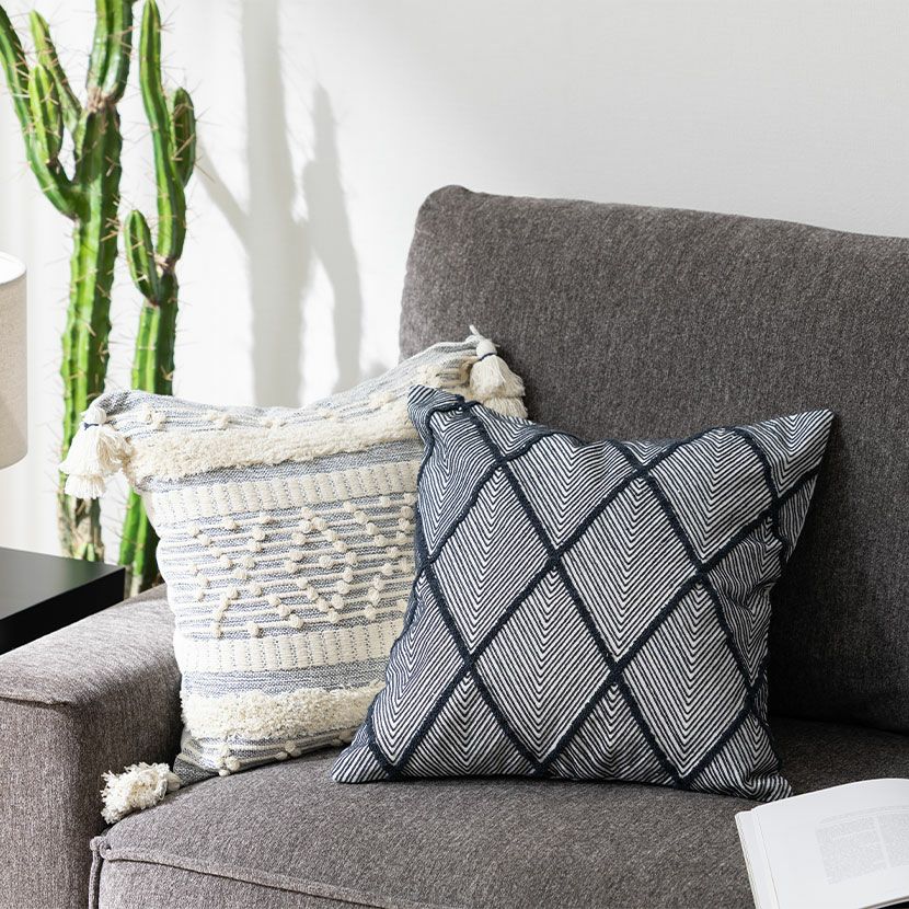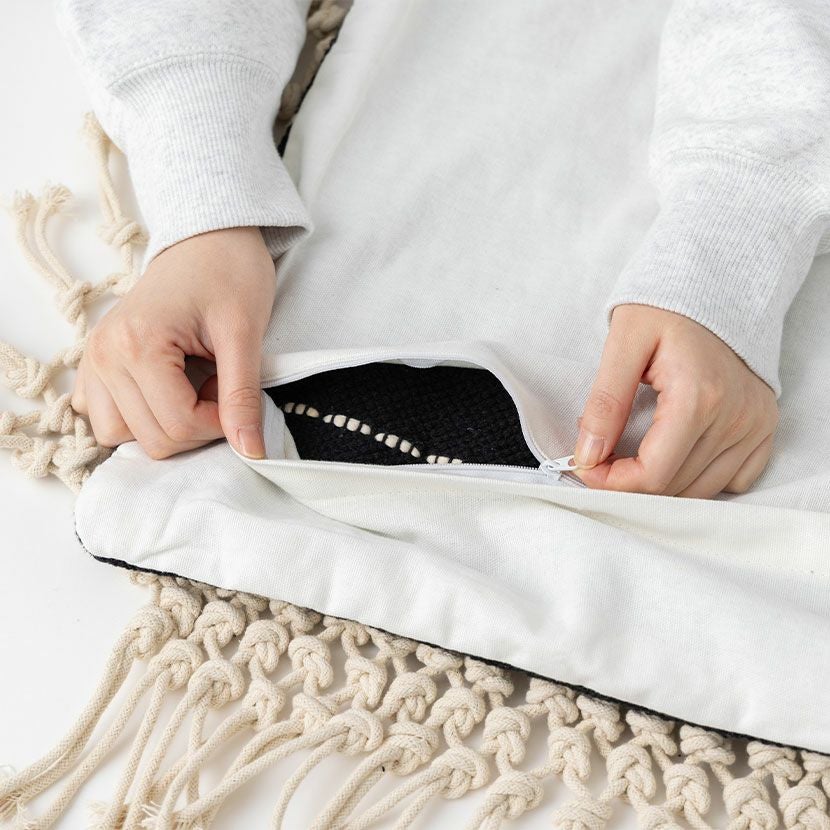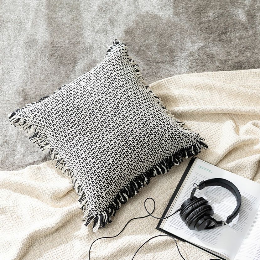 他の画像を見る 正方形 クッションカバー マクラメウーブン 45×45cm対応 綿100% 幾何学模様 ファブリック 座布団カバー モダン ソファクッション カバー おしゃれ モノトーン 送料無料 送料無料 完成品 完成品 ¥ 3,990 税込 カートに入れる