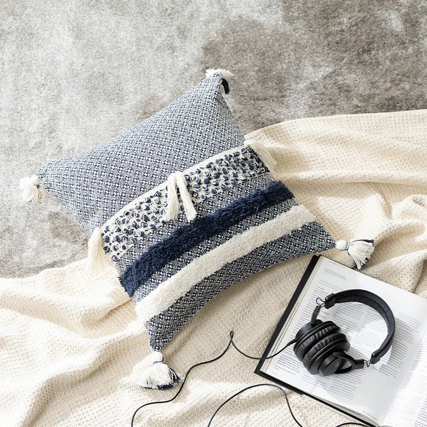他の画像を見る 正方形 クッションカバー タッセルフリンジ 45×45cm対応 綿100% ファブリック 座布団カバー 北欧 ソファクッション カバー おしゃれ 可愛い 青 ブルー 送料無料 送料無料 完成品 完成品 ¥ 3,990 税込 カートに入れる