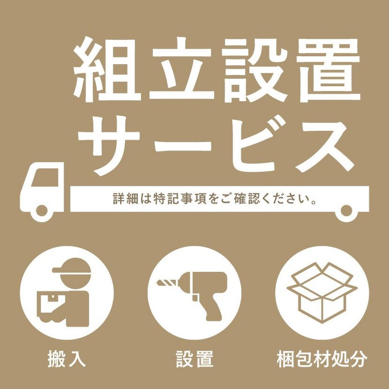 | 組み立て・設置付きについて | 「組立設置有償サービス」をご利用の場合、こちらの商品は組立設置付きでのお届けとなります。 |