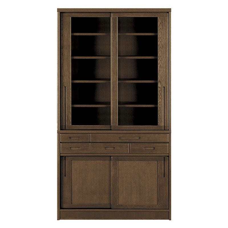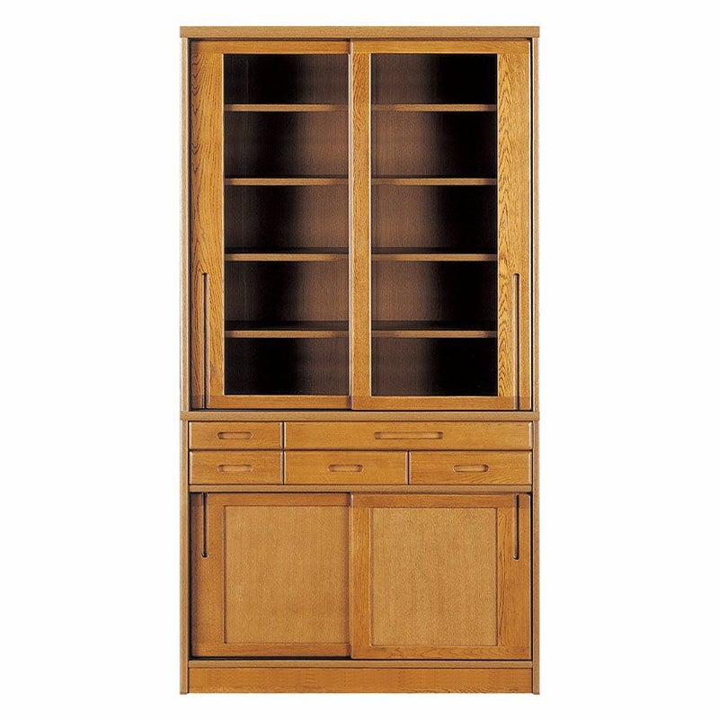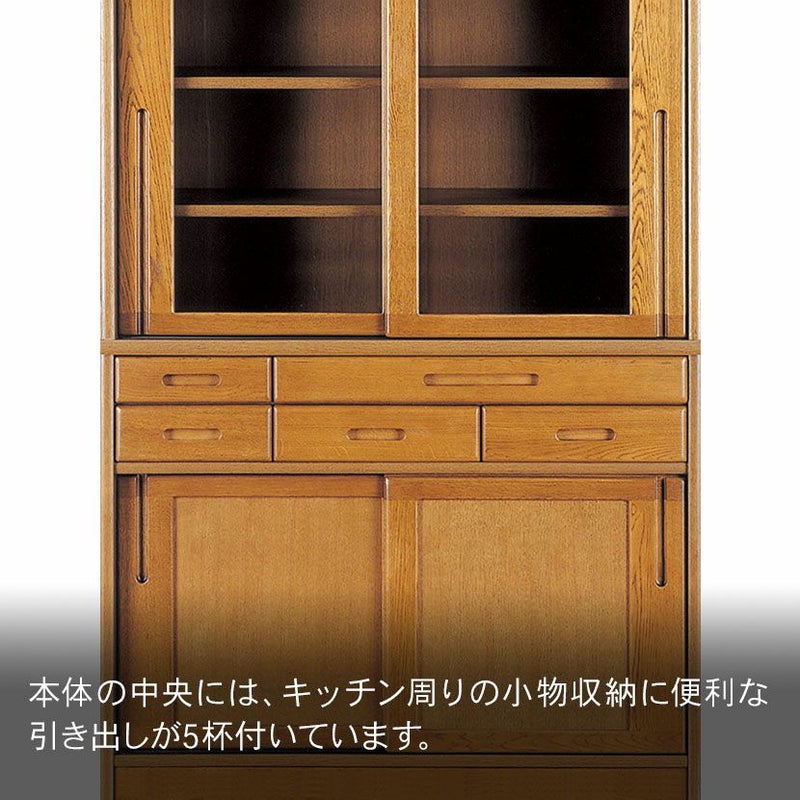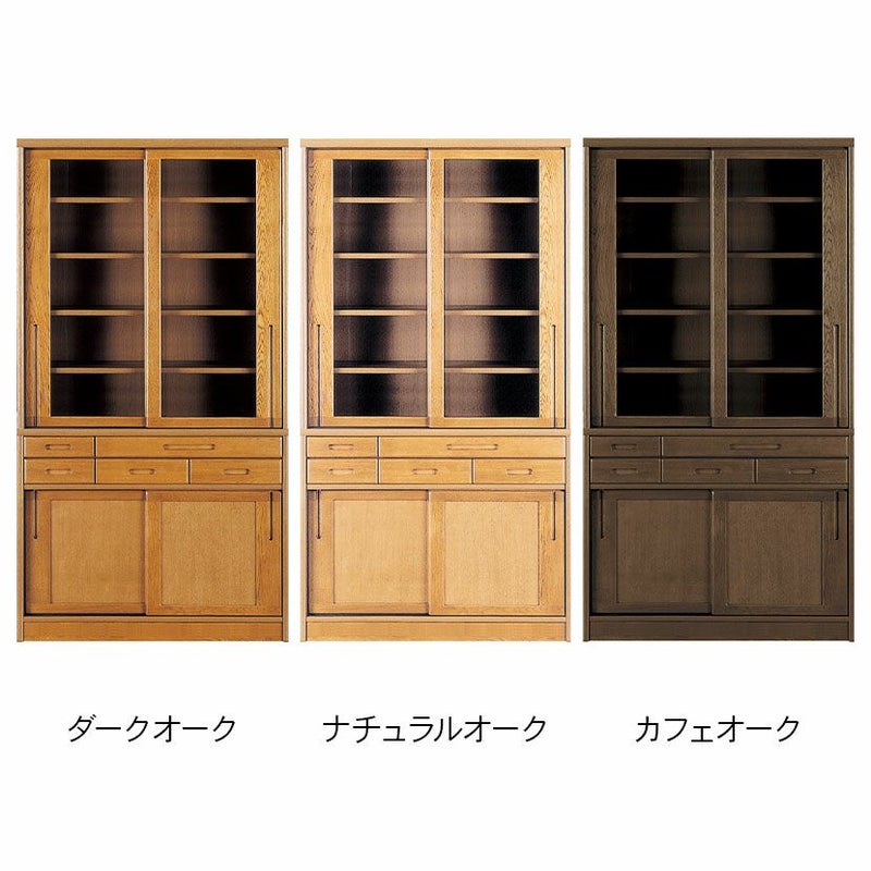 【設置無料】浜本工芸 幅105cm No.1800 食器棚 日本製 木製 天然木 ナラ材 ガラス扉 スライドテーブル付き 引き出し付き 収納 カップ ボード キッチンボード おしゃれ ナチュラル