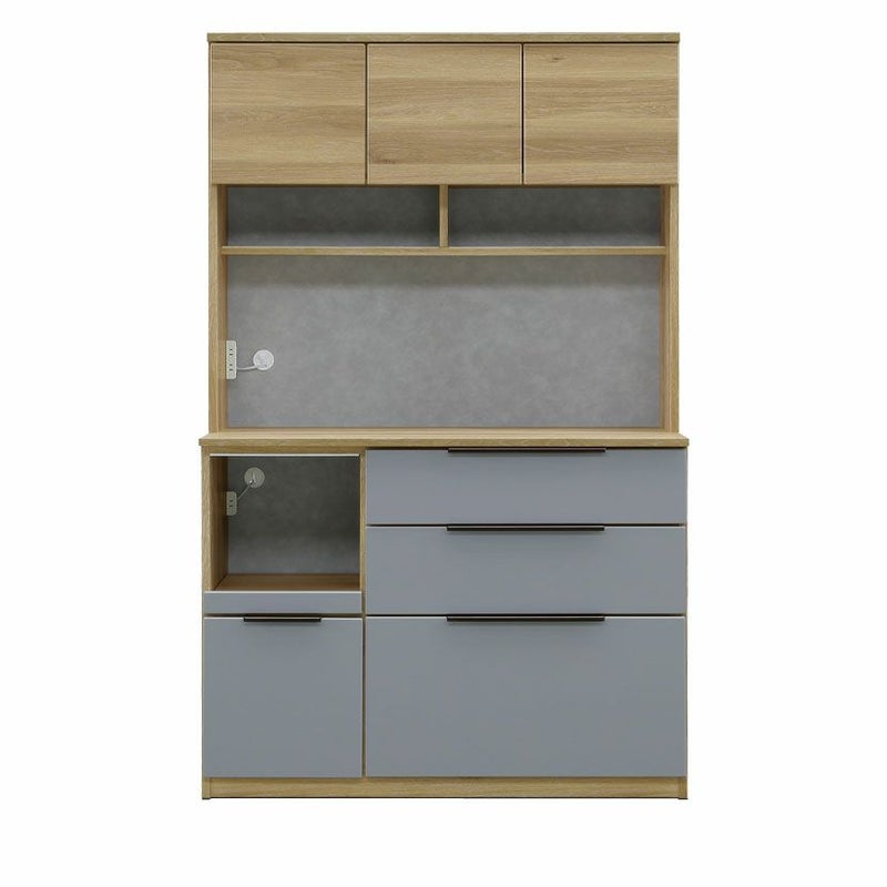 マットなグレーとナチュラルな木目調が印象的なツートンカラー。調理器具なども置ける大容量です。