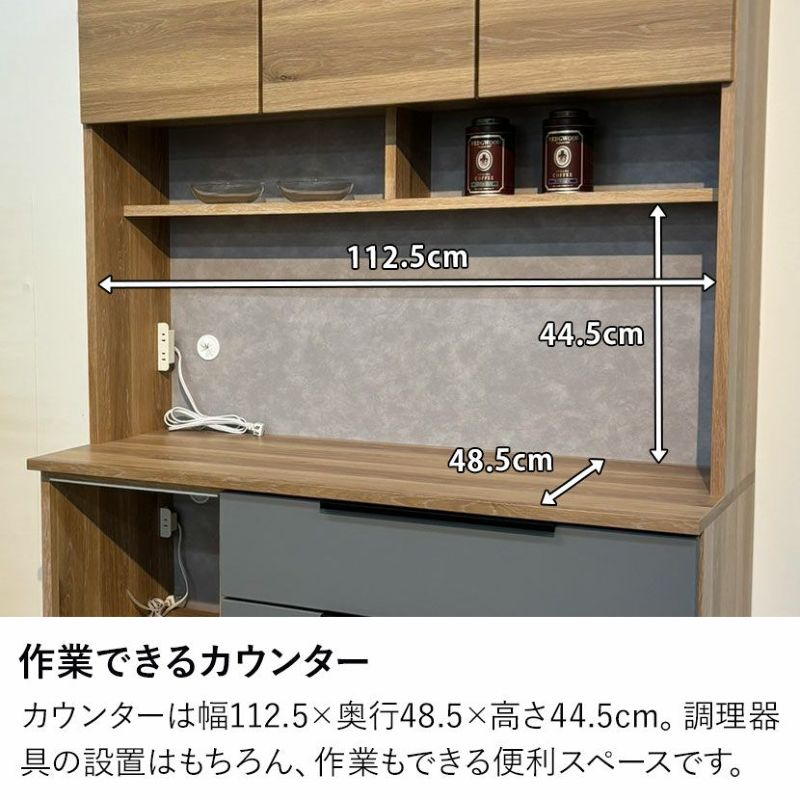 カウンターは幅112.5×奥行48.5×高さ44.5cm。調理器具の設置はもちろん、作業もできる便利スペースです。