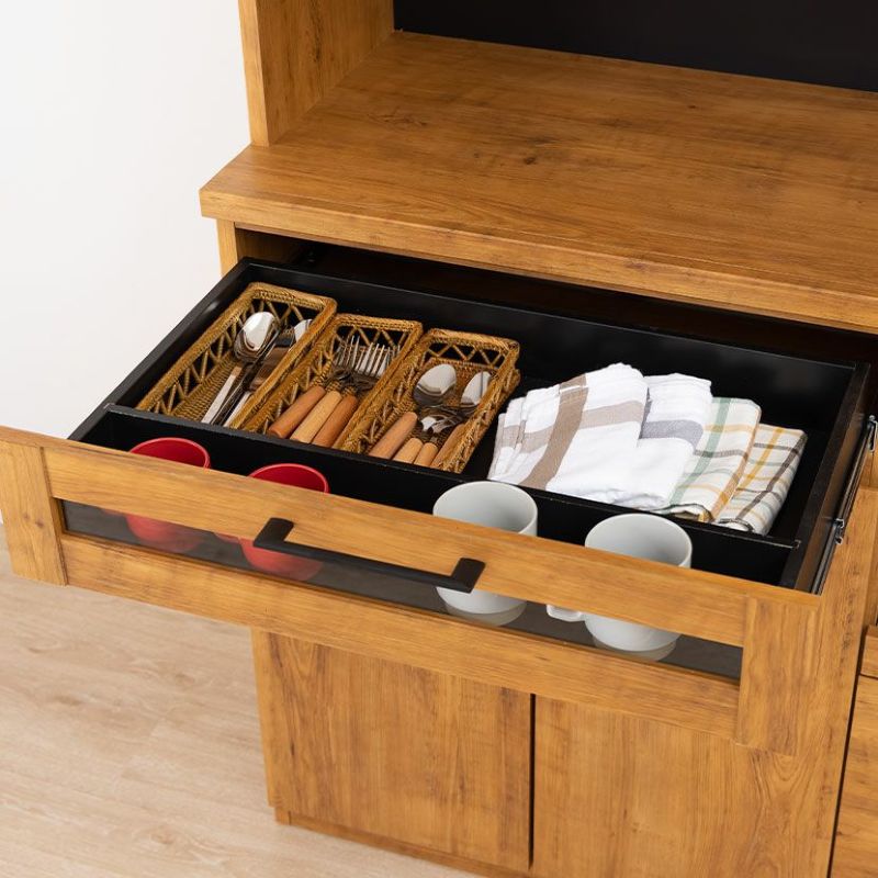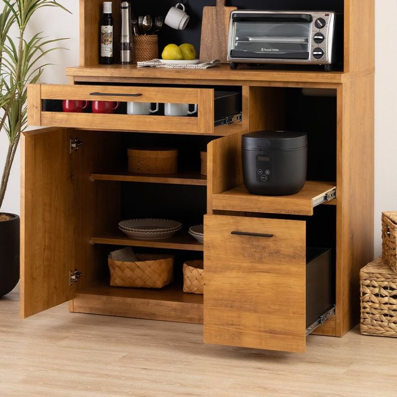 下部のオープン部は便利なスライド棚仕様で、炊飯器などの家電置き場として活用できます。
