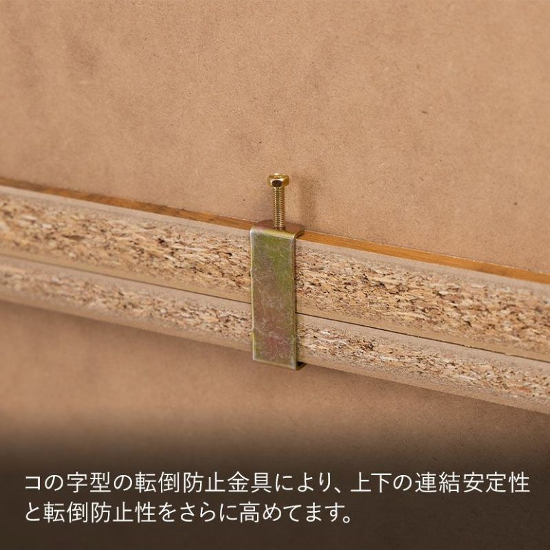 板受けには耐震ダボを採用しているので、板が飛び出しにくくなっています。